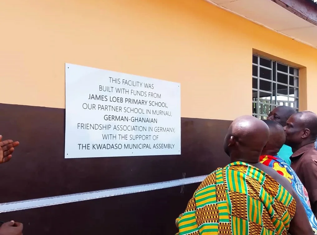 Die Denchemouso Basic School in Atwima hat durch ein gemeinschaftliches Partnerschaftsprojekt eine neue Toilette bauen können! Die Grundschulkinder mussten bislang mit einer maroden sanitären Anlage und einer Latrine den Schulalltag bestreiten, da es der staatlichen Schule an Geld und Material fehlt. Die Kinder in ihrer deutschen Partnerschule, die James-Loeb-Grundschule in Murnau, haben das zum Anlass genommen, einen Spendenlauf an ihrer Schule zu organisieren.